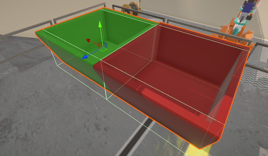 Le tri final est validé par des zones de dépôt (bennes), chacune associée à une détection d’entrée/sortie. Lorsqu’un pneu est déposé dans la bonne benne, le compteur de réussite est incrémenté ; s’il en ressort, le compteur est décrémenté. La victoire est atteinte lorsque 10 pneus sont correctement placés.