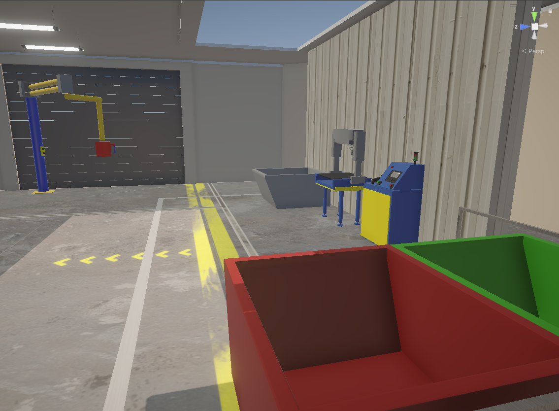 L’utilisateur agit au moyen de deux poignées VR saisissables, associées aux mains gauche et droite. Cette contrainte bimanuel est pertinente pédagogiquement, car elle simule une coordination motrice proche d’une tâche réelle de conduite d’engin.
